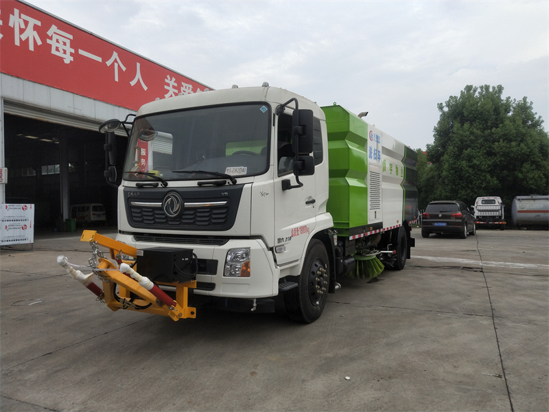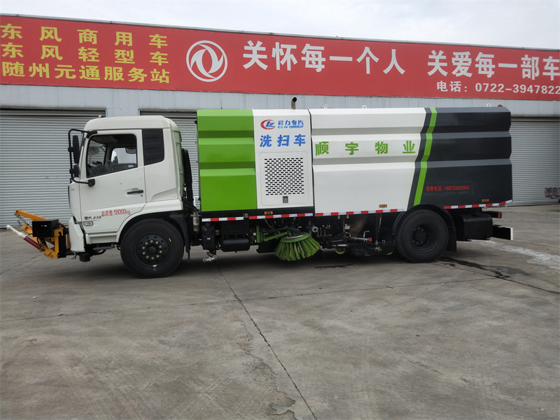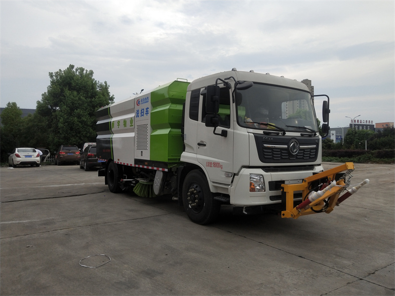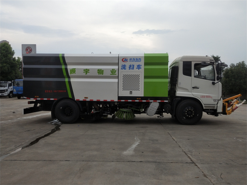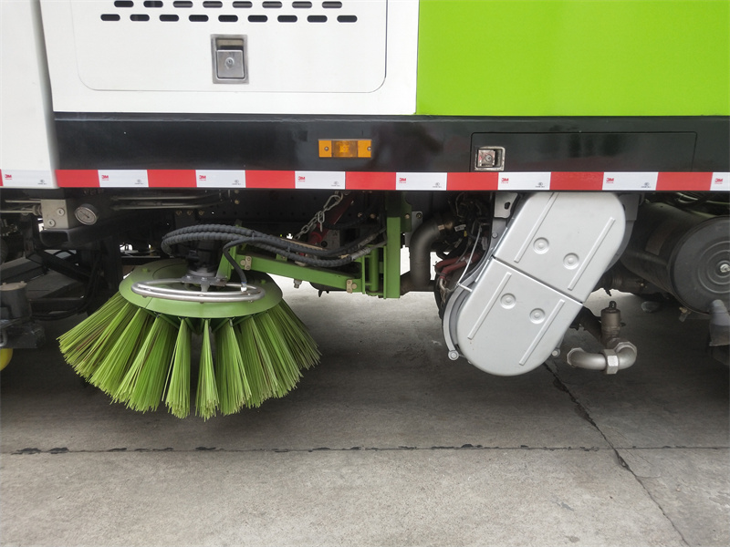 洗掃車采用中置兩刷盤,中置寬吸盤,配上具有防撞避障功能的V型高壓沖水架,組成一條大于3.5米的沖洗清掃帶。采用康明斯EQ6BT5.9-118型副發(fā)動機(jī)現(xiàn)階段亦有采用電動作為動力的驅(qū)動裝置橫置在車架中部,具有氣動離合裝置控制的抽吸風(fēng)機(jī)布置在動力倉的左側(cè)。采用不銹鋼材料加工而成的水箱與垃圾箱均為采用方形瓦棱結(jié)構(gòu)。水箱分為兩部位,一部分為前置獨立水箱,裝配在動力倉的前部;另一部分為設(shè)置在垃圾箱前部的水箱,可隨垃圾箱與動力倉罩同時升降。具有舉升功能的垃圾箱內(nèi)裝配有高壓沖洗噴頭,使得卸料更為輕松、干凈徹底。能夠隨垃圾箱體舉升的動力倉罩可使動力系統(tǒng)的維修保養(yǎng)極為便利。采用歐美地區(qū)的名優(yōu)配套部件,使得整車性能更為優(yōu)良,工作更為可靠。