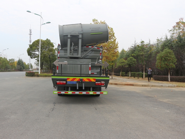 產品標配前噴(鴨嘴)、后沖、后灑、側噴、后置式工作 平臺,平臺上配置綠化水炮(可 360°旋轉,既可以調成柱狀,也可 以調成霧狀,更可以調成直沖狀、大雨、中雨、小雨、毛毛雨),配 備優(yōu)質大功率專用灑水泵(可自吸自排,可從河里或池塘抽水到罐體), 取力器,雜物過濾網,消防接口,自流球閥系統、取力器、球閥、濾網 均為國家標準產品,主管道加粗,法蘭墊、法蘭盤加厚,大通徑球閥。 整體具備性能優(yōu)良安全可靠、效率高、流量大、維修方便等特點
