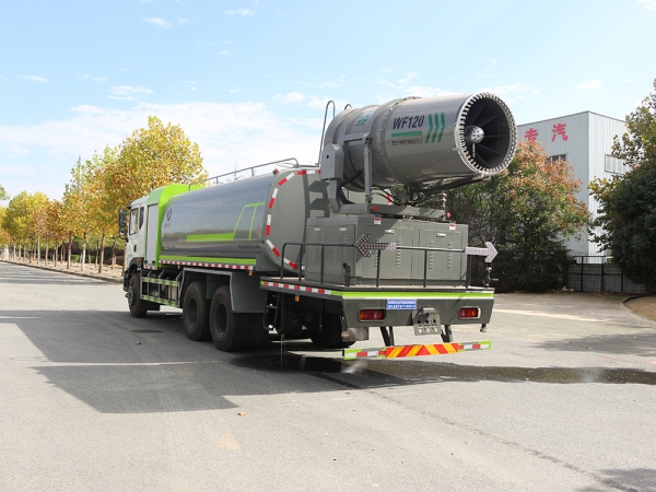東風(fēng)大型灑水車-抑塵車上裝配置: 1、罐體約為 17 方,可加裝 60-120 型霧炮 2、邊燈帶電,罐體尾部上方標(biāo)配 2 個(gè)紅色示寬燈, 3、標(biāo)配前噴為鴨嘴直沖,標(biāo)配后沖,用戶可根據(jù)自己的需求,來調(diào) 整對沖位置。