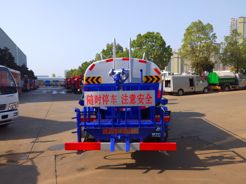 國(guó)五東風(fēng)多利卡灑水車,罐體容積5立方米,該車具有免征公告(可免交車輛購(gòu)置稅)。采用武鋼4mm優(yōu)質(zhì)碳鋼板一次卷壓成型,完全做到無(wú)縫成型。罐體內(nèi)設(shè)多道防波隔板,采用高壓氣體試漏檢測(cè),使罐體具有強(qiáng)度高,重心穩(wěn),車輛運(yùn)載安全平穩(wěn)。罐體外表為烤漆,罐體及各保險(xiǎn)杠貼紅白色視覺(jué)反光條,罐體兩側(cè)噴“綠化灑水車”字樣(可按您的要求噴繪字樣),罐體顏色出廠為上白下綠或上白下藍(lán)(可按您的要求噴繪顏色)。