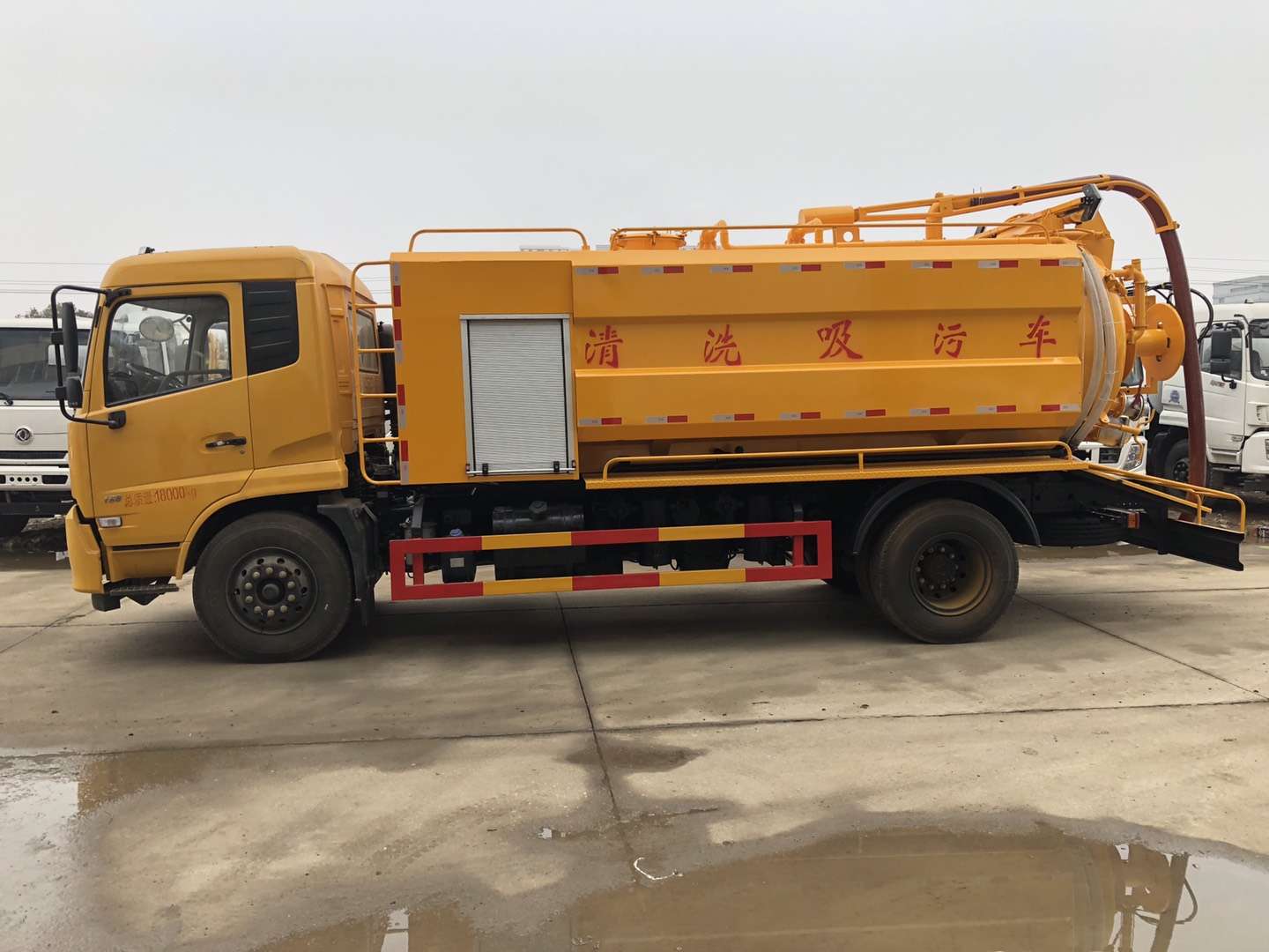 罐體容積9立方,采用武鋼優(yōu)質(zhì)鋼板制作(6個厚)采用意大利中冷型真空泵,罐體上部帶液壓吸污吊桿(可360度旋轉,遙控控制)配備一根10米吸污管,尾部一個150排污球閥,帶一個100的自流口,水箱容積4立方,配備德國品孚215L高壓泵,22兆帕,帶60米19號高壓管,帶10個組合噴頭,罐體可以液壓舉升,后大蓋可開啟,帶4個鎖緊裝置,帶箭頭燈,LED夜間作業(yè)燈,其他標配。