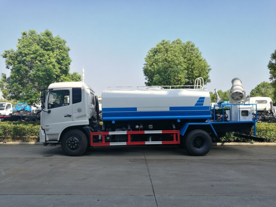 東風(fēng)天錦12噸抑塵車:底盤采用東風(fēng)天錦國五底盤,康明斯6缸180馬力發(fā)動(dòng)機(jī),6檔變速箱,900鋼絲胎帶備胎,原裝空調(diào),ABS,行駛記錄儀,有環(huán)保,有免征,整車不超尺寸。上裝配置:罐體容積11.3噸,罐體為方形罐,罐體內(nèi)部做防腐,主管路鍍鋅,工作平臺(tái),罐體采用杭州威龍60/90大流量水泵,消防接口可自流,音樂喇叭,60-80米噴霧機(jī)組。霧炮為全自動(dòng),上下負(fù)10度到45度,左右車載式280度旋轉(zhuǎn),覆蓋寬度面積100米以上。整車具有灑水車的一切功能:前沖、后灑、側(cè)噴、高炮,高炮達(dá)到35米至45米。