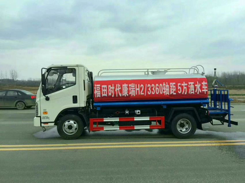 福田時(shí)代5噸灑水車,罐體實(shí)際容積5立方,凡是購買該車的用戶,灑水車廠家立送7天臨時(shí)牌照一份,灑水車的所有功能配件,均享有一年的質(zhì)保期,質(zhì)保期內(nèi)免費(fèi)更換,