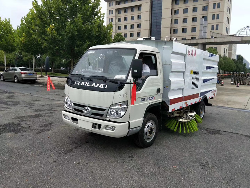 該掃路車采用福田型二類底盤改裝,加裝副發(fā)動機、風機、清水箱、垃圾箱、左右立掃、后置盤,掃盤降塵系統(tǒng),液壓系統(tǒng)、專用裝置電控系統(tǒng)和副車架等改裝而成。