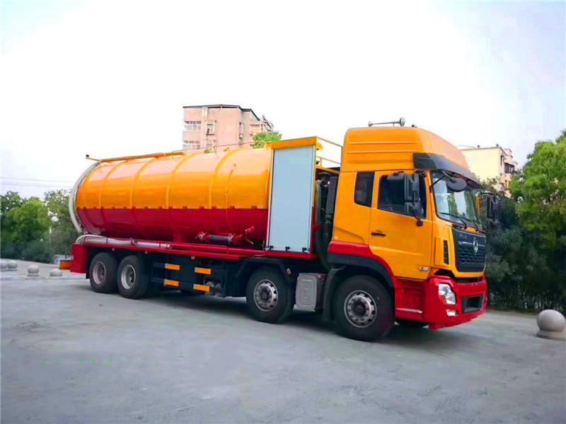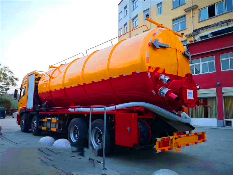 東風(fēng)天龍后八輪高壓清洗吸污車:采用國產(chǎn)優(yōu)質(zhì)碳鋼板制作,罐體采用一次成型而成,鋼板厚度8mm厚,封頭8mm厚,采用通潔或者品浮高壓清洗泵,大功率國產(chǎn)水循環(huán)吸污泵,加裝液壓卷盤,配60-100米高壓管,配10個(gè)多功能耐磨沖頭,尾部帶一個(gè)自流口,帶視糞窗,洗手裝置,吸污罐帶液壓頂起裝置,可以選擇吸污罐后蓋液壓打開或者不打開,配8米吸污管一根。東風(fēng)天龍清洗吸污車底盤配置:東風(fēng)天龍豪華駕駛室,康明斯發(fā)動(dòng)機(jī)270馬力,帶增壓,9檔變速箱,5噸前橋,10噸雙后橋,方向助力,斷汽剎,1100鋼絲胎(含一條備胎),原裝空調(diào)