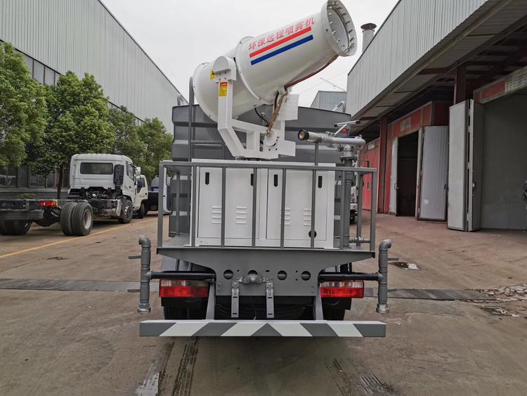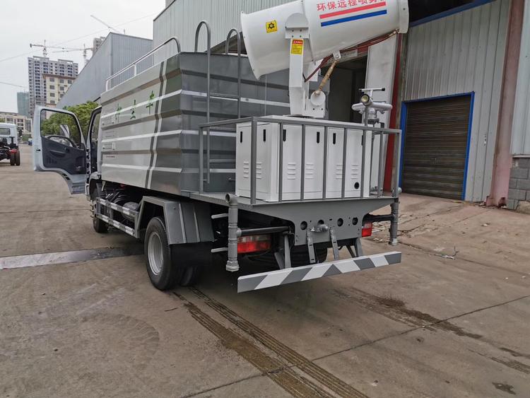 東風(fēng)5噸灑水抑塵車,云內(nèi)95匹馬力發(fā)動機 5檔變速箱,700-16輪胎,罐體采用武鋼優(yōu)質(zhì)鋼材制作,專用功能為:前沖后灑,帶側(cè)噴,罐體后帶工作平臺,平臺上安裝綠化灑水高炮,帶專用灑水車水泵,帶自流閥,帶消防接頭,加裝30型霧炮,帶8千瓦柴油發(fā)電機組,霧炮可以遙控操作