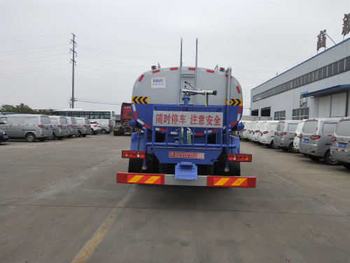 罐體用4MM碳鋼板制作,罐內(nèi)隔板具有防波作用,以減低汽車行駛時(shí)罐體液體的沖擊。整車帶一個(gè)專用灑水泵(垂直吸程6米),灑水寬度14米,射程28米。多功能灑水車配備2個(gè)前沖(噴)(能將路面泥巴、塵土、垃圾沖干凈);2個(gè)后灑(能均勻地將水灑在路面,一次灑水寬度14米)、2個(gè)側(cè)噴(花灑)(能均勻地將路旁綠化帶澆灌)、帶1個(gè)后工作平臺(tái),