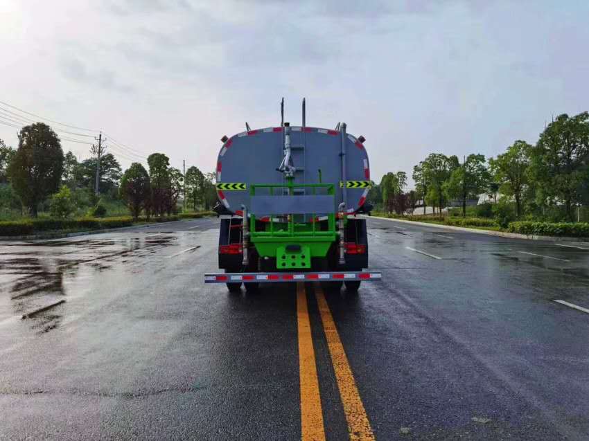 國六東風(fēng)14方灑水車采用東風(fēng)原廠底盤,玉柴200馬力/康明斯210馬力發(fā)動機(jī),法士特C6J75T6擋變速箱,295/80R22.5真空胎,前橋3.9噸,后橋8噸,250雙層大梁,方向助力,斷氣剎,離合助力,ABS,電動窗,氣囊坐椅,空調(diào),罐體采用4mm厚武鋼專用板材制作,實(shí)際容積14立方,該灑水車標(biāo)配前沖(噴)后灑,灑水寬度≥14米,帶側(cè)噴,罐體后帶工作平臺,平臺上安裝綠化灑水炮,灑水炮可全方位旋轉(zhuǎn),射程≥28米,可連續(xù)調(diào)成直沖狀、大雨、小雨、毛毛雨,帶安全護(hù)欄,配備專用灑水泵,泵可自吸自排,安裝過濾網(wǎng),帶消防接口,可通過消防栓進(jìn)水,帶自流閥,具有自吸自排功能,垂直吸≥7米;