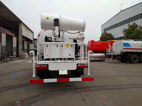 霧炮車工作原理是利用高氣壓將水加壓,經(jīng)過管道輸入到高壓噴嘴霧化裝置形成飄灑在空氣中的水霧,水霧經(jīng)射霧系統(tǒng)將水霧發(fā)送到較遠距離,水霧能夠吸附空氣中的細小粉塵和懸浮微粒,從而實現(xiàn)降塵。在長原霧炮車工作過程中,其中有幾個裝置的具體作用如下:
