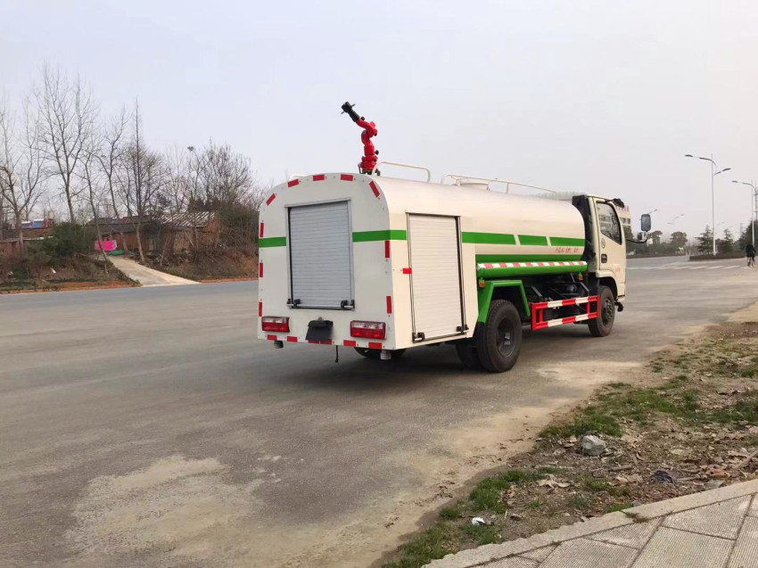 上裝配置:罐體采用武鋼專用容積板制作,實(shí)際容積5立方,罐內(nèi)隔板具有防波作用,以減低汽車行駛時罐體液體的沖擊。泵進(jìn)泵出,消防栓接口,前沖、后灑、側(cè)噴、后工作平臺帶綠化水炮,垂直吸程 7米,灑水寬度 14-16米,射程 20-25米,引水時間5min,流量90m3/h。自流閥、濾網(wǎng)、帶自吸自排功能。兩根等長輸水管,金屬漆,其余標(biāo)配。可加裝方向助力、空調(diào)、加裝藥盤、氣動控制閥、噴藥設(shè)備、非車帶泵動力等。