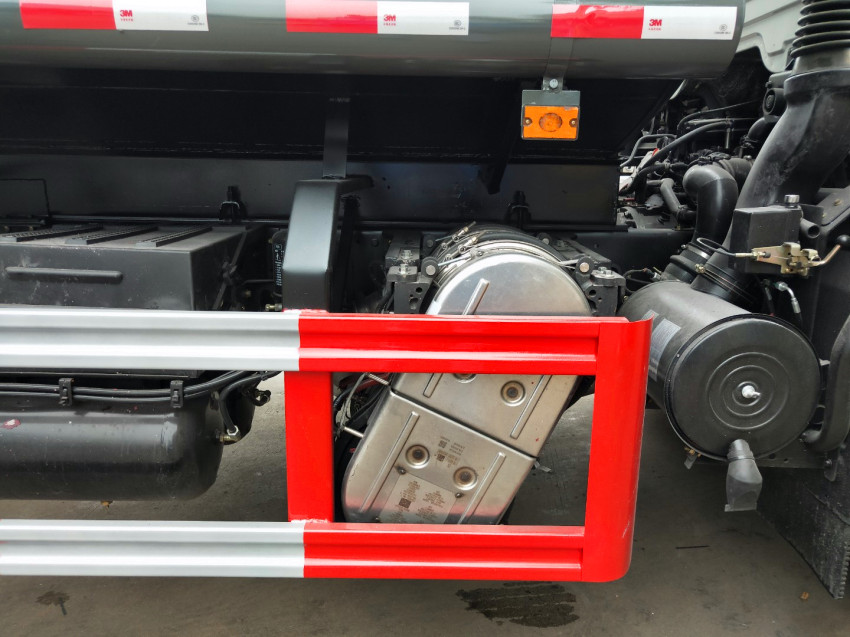 裝有兩只噴淋后灑裝置,可對(duì)路面進(jìn)行保潔和壓塵,呈扇形噴灑時(shí),灑水寬度可達(dá)10米以上。