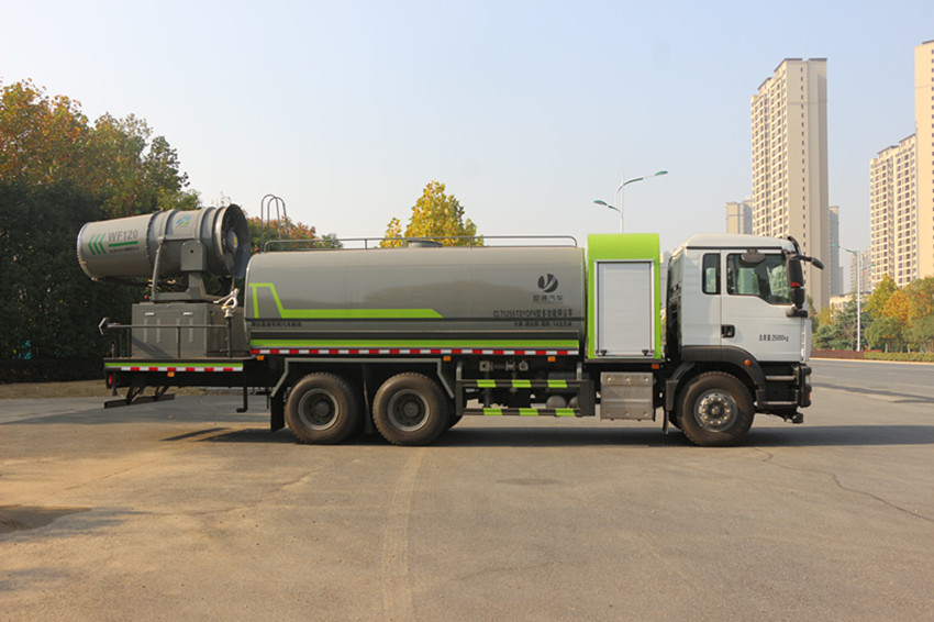 20噸灑水車罐體尾部采用大平臺,可搭載30米車載式風送噴霧機組,具有功力強、射程遠、穿透力強、霧粒附著力強、覆蓋范圍廣、可以實現(xiàn)精量噴霧等特點,適合風沙抑塵、工地降塵、拆遷降塵,專門用于城市開發(fā)區(qū)建設工地、拆遷工地、車站儲煤場、洗煤廠、焦化廠、鐵礦、鋼廠、港口等的揚塵風沙控制;在城市遭遇霧霾天氣、空氣質量PM2.5嚴重超標時,可隨意選定一個區(qū)域進行液霧降塵、分解淡化空氣中的顆粒濃度、將飄浮在空氣中的污染顆粒物、塵埃等迅速逼降地面,達到治理凈化空氣的明顯良好效果。