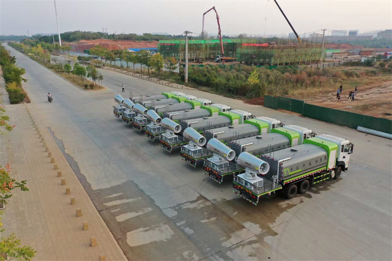 一. 產(chǎn)品簡述 抑塵車又稱為綠化噴灑車、多功能灑水車、園林綠化灑水車。抑 塵車適合于各種路面沖洗,樹木、綠化帶、草坪綠化,道路、廠礦企業(yè) 施工建設(shè),高空建筑沖洗。抑塵也可以作為運水車使用,最常見的車 型有綠化噴灑車、多功能灑水車、綠化灑水車幾大類。 我公司產(chǎn)品標(biāo)配前噴(鴨嘴)、后沖、后灑、側(cè)噴、后置式工作 平臺,平臺上配置綠化水炮(可 360°旋轉(zhuǎn),既可以調(diào)成柱狀,也可 以調(diào)成霧狀,更可以調(diào)成直沖狀、大雨、中雨、小雨、毛毛雨),配 備優(yōu)質(zhì)大功率專用灑水泵(可自吸自排,可從河里或池塘抽水到罐體), 取力器,雜物過濾網(wǎng),消防接口,自流球閥系統(tǒng)、取力器、球閥、濾網(wǎng) 均為國家標(biāo)準(zhǔn)產(chǎn)品,主管道加粗,法蘭墊、法蘭盤加厚,大通徑球閥。 整體具備性能優(yōu)良安全可靠、效率高、流量大、維修方便等特點。