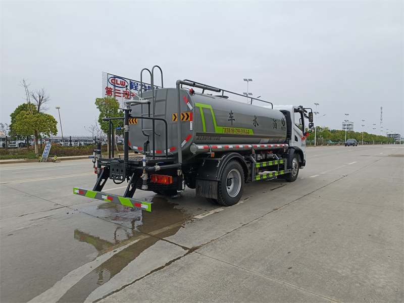 9.2噸灑水車罐體采用優(yōu)質(zhì)碳鋼制作,灑水車配備大功率灑水泵,泵可自吸自排,專用功能為:前沖、后灑、帶側(cè)噴,罐體后帶工作平臺,平臺上安裝綠化灑水高炮,并有多種雨壯可調(diào)節(jié)(大雨.中雨.毛毛雨.霧狀)
