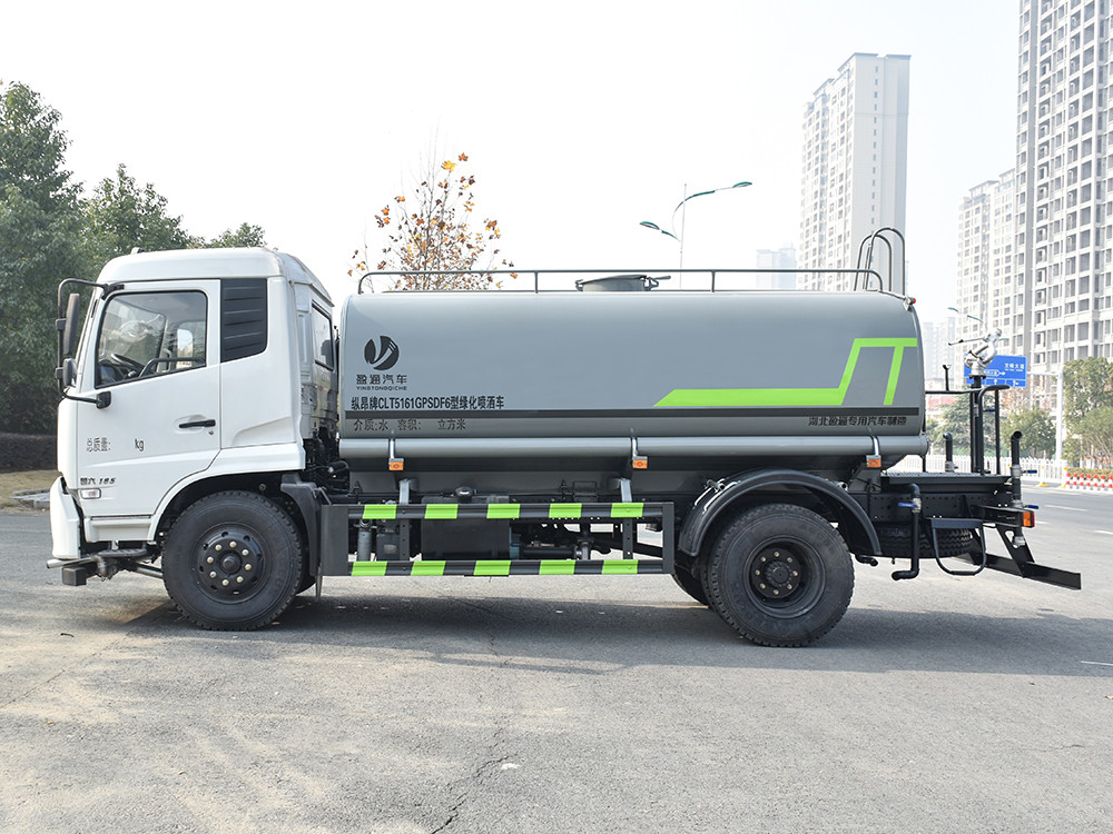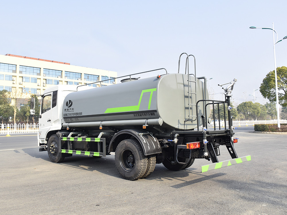 灑水車產(chǎn)品標(biāo)配前噴(鴨嘴)、后沖、后灑、側(cè)噴、后置式工作 平臺(tái),平臺(tái)上配置綠化水炮(可 360°旋轉(zhuǎn),既可以調(diào)成柱狀,也可 以調(diào)成霧狀,更可以調(diào)成直沖狀、大雨、中雨、小雨、毛毛雨),配 備優(yōu)質(zhì)大功率專用灑水泵(可自吸自排,可從河里或池塘抽水到罐體), 取力器,雜物過(guò)濾網(wǎng),消防接口,自流球閥系統(tǒng)、取力器、球閥、濾網(wǎng) 均為國(guó)家標(biāo)準(zhǔn)產(chǎn)品,主管道加粗,法蘭墊、法蘭盤加厚,大通徑球閥。 整體具備性能優(yōu)良安全可靠、效率高、流量大、維修方便等特點(diǎn)