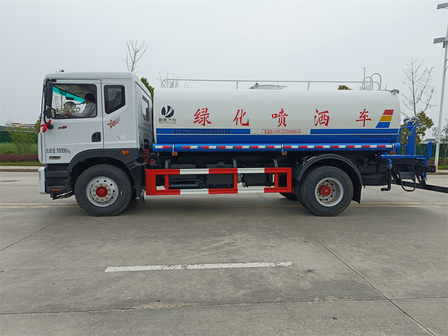 我公司產(chǎn)品標(biāo)配前噴(鴨嘴)、后沖、后灑、側(cè)噴、后置式工作 平臺,平臺上配置綠化水炮(可 360°旋轉(zhuǎn),既可以調(diào)成柱狀,也可 以調(diào)成霧狀,更可以調(diào)成直沖狀、大雨、中雨、小雨、毛毛雨),配 備優(yōu)質(zhì)大功率專用灑水泵(可自吸自排,可從河里或池塘抽水到罐體), 取力器,雜物過濾網(wǎng),消防接口,自流球閥系統(tǒng)、取力器、球閥、濾網(wǎng) 均為國家標(biāo)準(zhǔn)產(chǎn)品,主管道加粗,法蘭墊、法蘭盤加厚,大通徑球閥。 整體具備性能優(yōu)良安全可靠、效率高、流量大、維修方便等特點(diǎn)