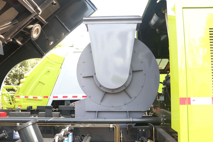 二、采用“中置兩立掃+中置寬吸嘴(內(nèi)置高壓水噴桿)+左右高壓側(cè)噴桿”的結(jié)構(gòu)。