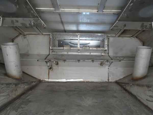 8)、污水箱內(nèi)采用大平面斜坡結(jié)構(gòu),最大卸料角度可達50度,更易于傾倒垃圾。污水箱內(nèi)設置了防溢滿報警裝置和高壓噴淋清洗裝置,防溢滿報警裝置可防止污水作業(yè)時從吸管溢出,造成二次污染;高壓噴淋清洗裝置在傾倒垃圾后可對污水箱進行自動清洗,大大減輕了操作人員的勞動強度