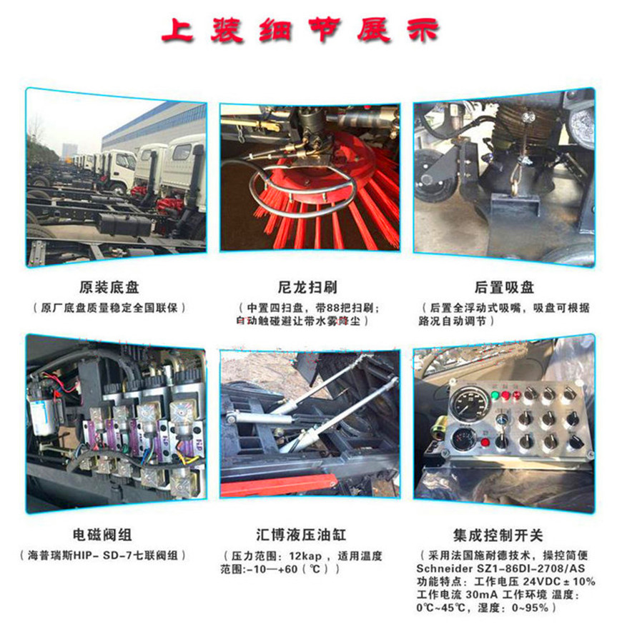 13. 液壓元件采用集成疊加設(shè)計,駕駛室電液集中控制,操作方便。駕駛室手動按鈕式液壓系統(tǒng)驅(qū)動左右立掃升降、左右掃肋旋轉(zhuǎn)、吸嘴升降、垃圾箱后門開閉、垃圾箱傾翻復(fù)位等機械動作。