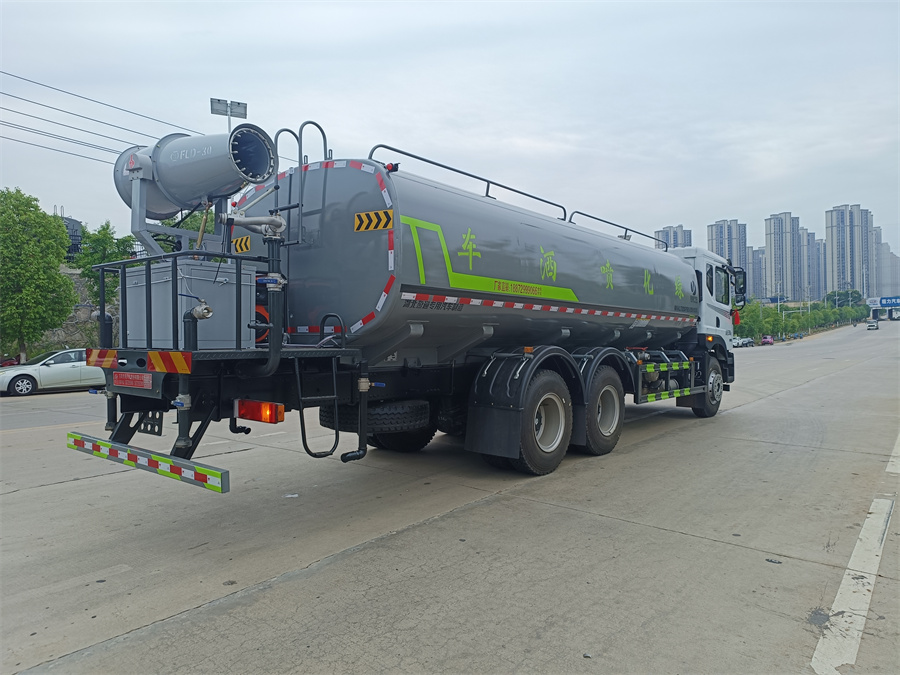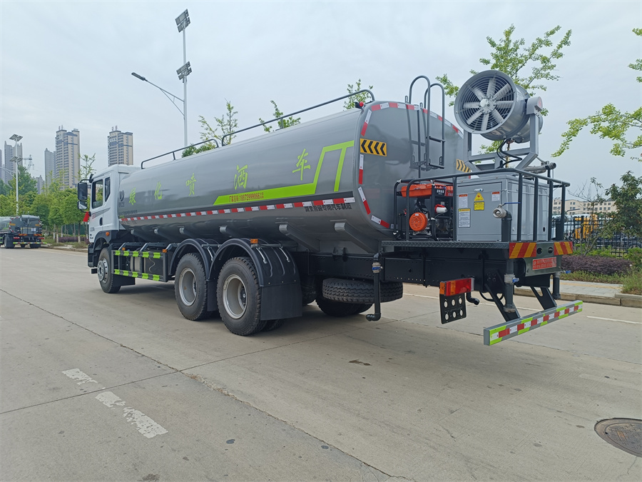 東風新款22噸霧炮灑水車產(chǎn)品標配前噴(鴨嘴)、后沖、后灑、側(cè)噴、后置式工作 平臺,平臺上配置綠化水炮(可 360 °旋轉(zhuǎn),既可以調(diào)成柱狀,也可 以調(diào)成霧狀,更可以調(diào)成直沖狀、大雨、中雨、小雨、毛毛雨),配 備優(yōu)質(zhì)大功率專用灑水泵(可自吸自排,可從河里或池塘抽水到罐體), 取力器,雜物過濾網(wǎng),消防接口, 自流球閥系統(tǒng)、取力器、球閥、濾網(wǎng) 均為國家標準產(chǎn)品,主管道加粗,法蘭墊、法蘭盤加厚,大通徑球閥。 整體具備性能優(yōu)良安全可靠、效率高、流量大、維修方便等特點。