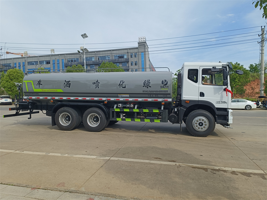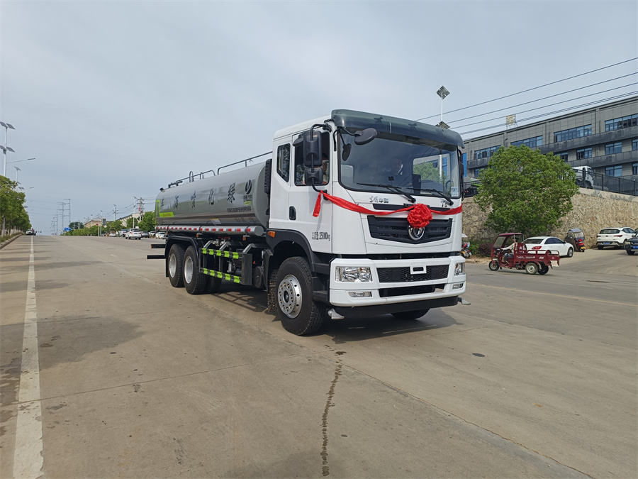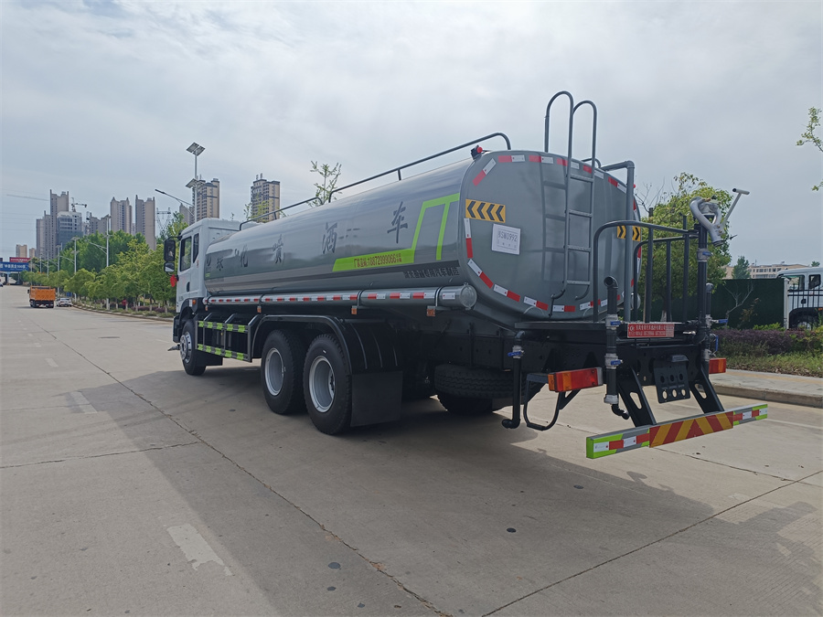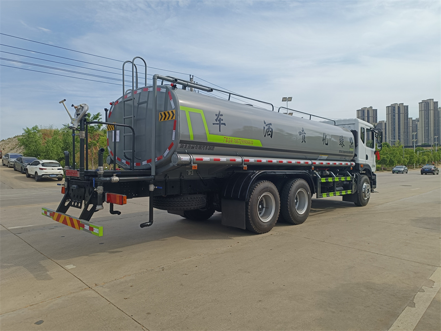 東風(fēng)20噸灑水車產(chǎn)品標(biāo)配前噴(鴨嘴)、后沖、后灑、側(cè)噴、后置式工作 平臺(tái),平臺(tái)上配置綠化水炮(可 360°旋轉(zhuǎn),既可以調(diào)成柱狀,也可 以調(diào)成霧狀,更可以調(diào)成直沖狀、大雨、中雨、小雨、毛毛雨),配 備優(yōu)質(zhì)大功率專用灑水泵(可自吸自排,可從河里或池塘抽水到罐體), 取力器,雜物過(guò)濾網(wǎng),消防接口,自流球閥系統(tǒng)、取力器、球閥、濾網(wǎng) 均為國(guó)家標(biāo)準(zhǔn)產(chǎn)品,主管道加粗,法蘭墊、法蘭盤(pán)加厚,大通徑球閥。 整體具備性能優(yōu)良安全可靠、效率高、流量大、維修方便等特點(diǎn)