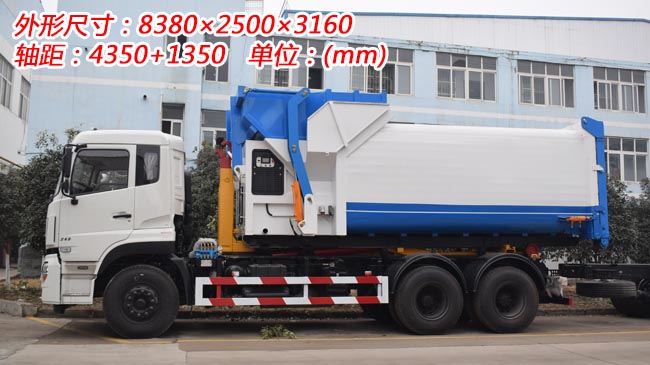 配15~20立方米勾臂式垃圾箱,也可配12~15立方米聯(lián)體壓縮垃圾箱,主勾臂采用高強(qiáng)度材質(zhì)打造,雙杠液壓,可加裝后液壓支腿。