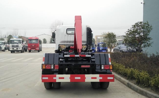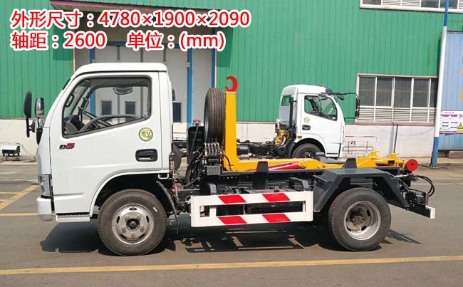 配套5~6立方米勾臂垃圾箱,高強(qiáng)度主勾臂,雙液壓油缸,采用國(guó)產(chǎn)油泵、多路閥、油缸,駕駛室外操作,尾部帶滾輪,箱體鎖緊裝置,鎖緊后可實(shí)現(xiàn)垃圾車自卸。