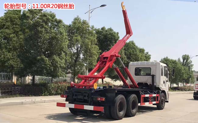配套10~20方勾臂垃圾箱,高強(qiáng)度主臂,雙油缸,采用國(guó)內(nèi)知名油泵、油缸、多路閥,尾部帶滾輪,帶有箱體鎖緊裝置。