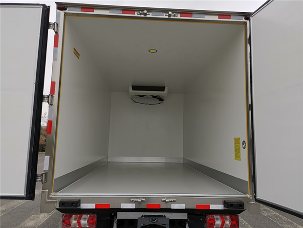 國六寬體江鈴凱運(yùn)4米2冷藏車廂體配置為:采用斷橋隔熱工藝,整體框架結(jié)構(gòu)制作,廂體內(nèi)、外壁材料為玻璃鋼板,采用高密度保溫層,廂板內(nèi)帶有骨架,廂體厚度80mm,門框,門飾件、包角全部使用不銹鋼材質(zhì)。最新款鋁合金包邊型材,廂體內(nèi)采用LED照明燈及廂體示寬燈;門框密封條為橡膠材質(zhì),后門梁帶加厚防撞塊,加厚型不銹鋼鉸鏈及鎖件。車體副梁采用510L高強(qiáng)度鋼制作,底板為鋁花紋板,車廂后門帶一個上車扶手,其余標(biāo)配;