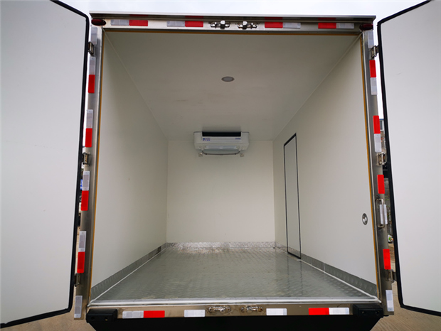 福田歐馬可4米2冷藏車廂體配置為:采用斷橋隔熱工藝,整體框架結構制作,廂體內(nèi)、外壁材料為玻璃鋼板,采用高密度保溫層,廂板內(nèi)帶有骨架,廂體厚度80mm,門框,門飾件、包角全部使用不銹鋼材質(zhì)。最新款鋁合金包邊型材,廂體內(nèi)采用LED照明燈及廂體示寬燈;門框密封條為橡膠材質(zhì),后門梁帶加厚防撞塊,加厚型不銹鋼鉸鏈及鎖件。車體副梁采用510L高強度鋼制作,底板為鋁花紋板,車廂后門帶一個上車扶手,其余標配;