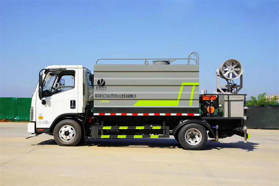 福田7方藍(lán)牌霧炮灑水車產(chǎn)品簡述:縱昂牌 CLT5043TDYBJ6 型多功能抑塵車標(biāo)配前噴(鴨嘴)、后對(duì) 沖、后灑、側(cè)噴、后置式工作平臺(tái),平臺(tái)上配置綠化水炮(可 360°旋轉(zhuǎn),既可 以調(diào)成柱狀,也可以調(diào)成霧狀),配備優(yōu)質(zhì)大功率專用灑水泵(可自吸自排, 可從河里或池塘抽水到罐體),取力器,雜物過濾網(wǎng),消防接口,自流球閥系統(tǒng)、 取力器、球閥、濾網(wǎng)均為國家標(biāo)準(zhǔn)產(chǎn)品,主管道加粗,法蘭墊、法蘭盤加厚, 大通徑球閥。整體具備性能優(yōu)良安全可靠、效率高、流量大、維修方便等特點(diǎn)。