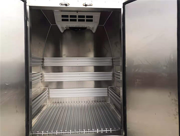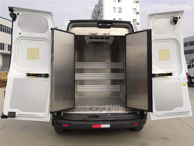 福特全順汽油版疫苗冷鏈車車廂配置: 保溫廂內(nèi)板為304不銹鋼板,夾保溫層制作,廂體底板和四周廂板安裝通風(fēng)槽。廂內(nèi)帶LED照明燈,溫濕度顯示記錄儀,紫外線消毒燈,外場(chǎng)照明燈燈配置。不銹鋼門框,鎖件。