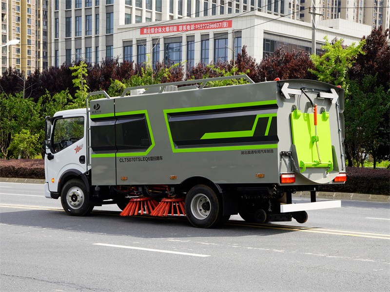 1. 采用吸掃混合的方式收集垃圾,濕式除塵、電液控制,液壓傾翻卸料的作業(yè)方式對(duì)路面進(jìn)行清掃作業(yè)。