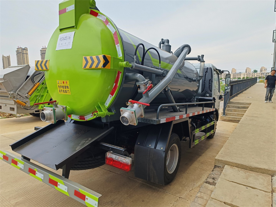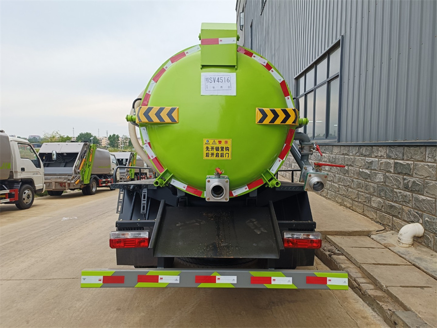 東風(fēng)多利卡5方吸污車上裝配置:吸污部分:配 SK-6 或 SK-9 水循環(huán)泵,一根 8 米吸污管(帶快速接頭),工具 箱;細(xì)節(jié)部分:污罐體采用 6mm 優(yōu)質(zhì)碳鋼板制作,安裝洗手 裝置,防溢閥(帶過濾網(wǎng)),加粗型污水觀察管;尾部 1 個(gè) 150 球 閥,1 個(gè) 100 球閥,均帶出口,球閥向下傾斜,后封頭加固,后蓋可液 壓開啟,配手動(dòng)鎖緊裝置。
