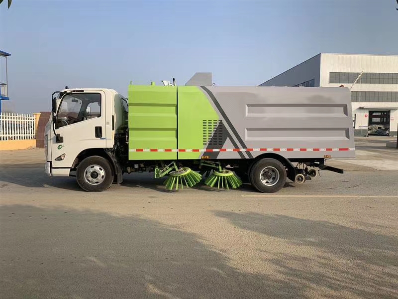 1、采用吸掃結(jié)合的方式收集垃圾,濕式除塵、電液控制,液壓傾翻卸料的作業(yè)方式對(duì)路面進(jìn)行清掃作業(yè)。