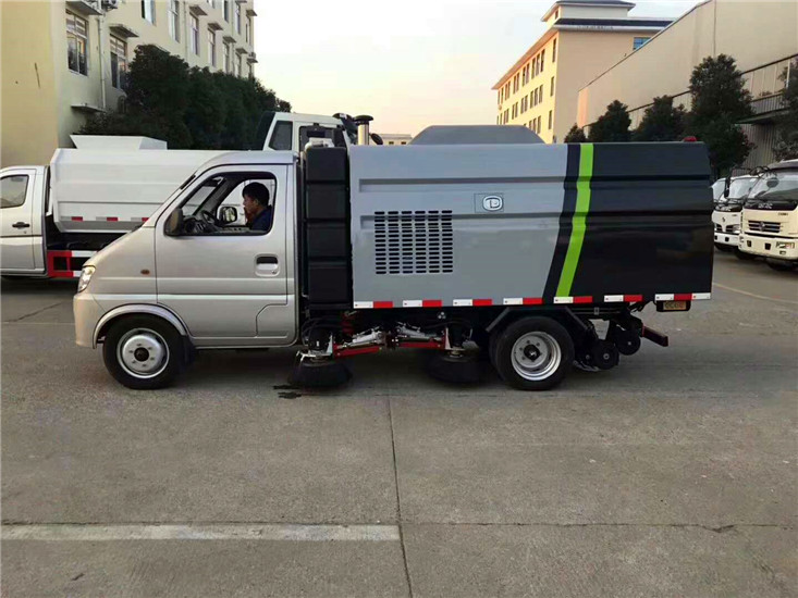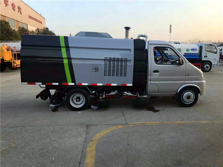 采用長(zhǎng)安二類底盤改裝,加裝副發(fā)動(dòng)機(jī)、風(fēng)機(jī)、清水箱、垃圾箱、左右立掃、后置吸盤,掃盤降塵系統(tǒng),液壓系統(tǒng)、專用裝置電控系統(tǒng)和副車架等改裝而成。