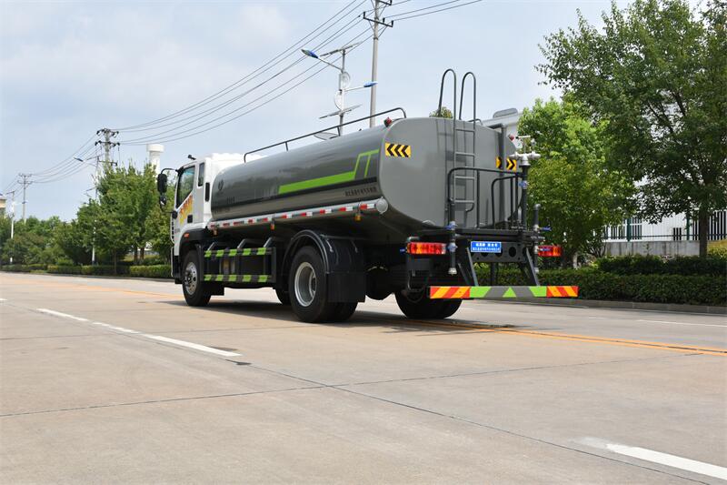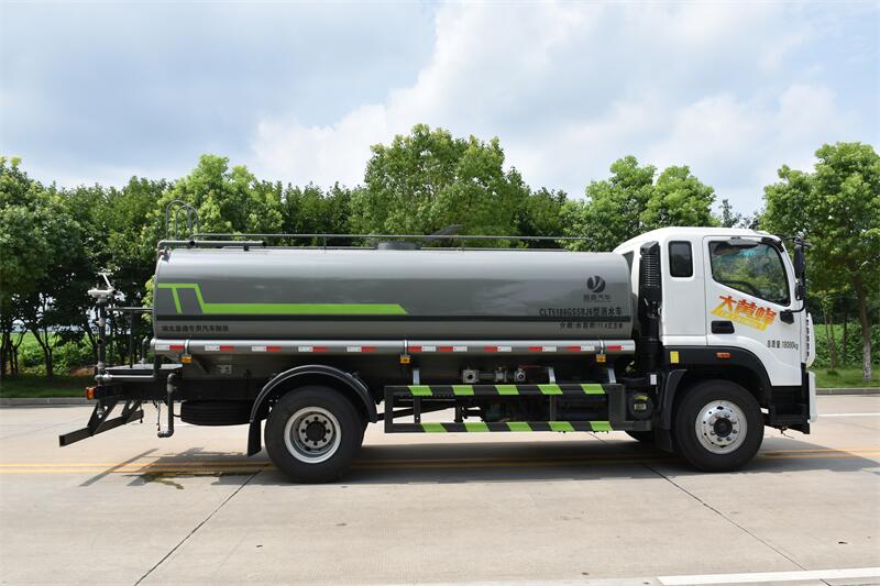 該車主要用于城鄉(xiāng)園林綠化,路面噴灑,除塵和降溫;主要裝置為罐體及噴灑裝置;罐體總?cè)萘?11.4立方米;罐體有效容積:10.86立方米;罐體外形尺寸(長(zhǎng)×長(zhǎng)軸×短軸)(mm):5200×2300×1400;4200×2300×1450;側(cè)、后防護(hù)材料均為:Q235碳鋼,連接方式均為:螺栓連接,后部防護(hù)截面尺寸(mm):120×50,后部防護(hù)離地高度(mm):470;ABS系統(tǒng)型號(hào):ABS-VI.E;生產(chǎn)企業(yè):廣州瑞立科密汽車電子股份有限公司.ABS系統(tǒng)型號(hào):ABS-E;生產(chǎn)企業(yè):威伯科汽車控制系統(tǒng)(中國(guó))有限公司,ABS系統(tǒng)型號(hào):3550D-1010;生產(chǎn)企業(yè):東科克諾爾商用車制動(dòng)系統(tǒng)(十堰)有限公司.采用3950mm,4500mm軸距。選裝尿素罐位置,選裝電瓶位置。選裝后部箭頭燈,選裝后部弧形噴灑裝置,選裝水炮支架位置,選裝自動(dòng)球閥安裝位置,選裝前部水炮樣式,前伸為500mm,對(duì)應(yīng)整車長(zhǎng)度為8950mm,7950mm。