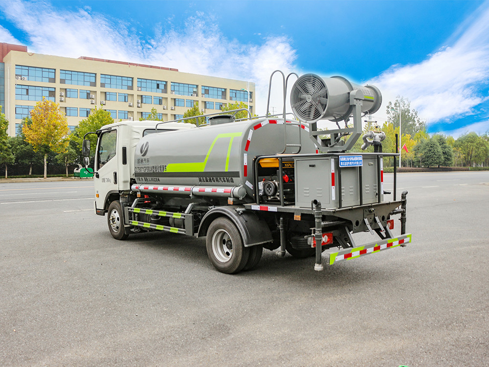 福田 H2 藍(lán)牌 5 方抑塵車(chē)-灑水車(chē)產(chǎn)品產(chǎn)品配置 1.底盤(pán)配置: 福田 H2 駕駛室,發(fā)動(dòng)機(jī)全柴 115 馬力,萬(wàn)里揚(yáng) 5 檔變速箱, 7.00R16 鋼絲胎,3360 軸距,中控鎖,電動(dòng)玻璃,T-BOX(全國(guó)通用), 5T 后橋,斷氣剎,ABS2.上裝配置: 1、罐體約為 5 方,可加裝 30 型霧炮 2、邊燈帶電,罐體尾部上方標(biāo)配 2 個(gè)紅色示寬燈, 3、標(biāo)配前噴為鴨嘴直沖,標(biāo)配后沖,用戶(hù)可根據(jù)自己的需求,來(lái)調(diào) 整對(duì)沖位置。 4、花紋防滑平臺(tái),炮筒后蓋為定制型螺栓卡扣, 5、前噴、后沖、后灑、側(cè)噴,綠化高炮開(kāi)關(guān)球閥均采用 50 大通經(jīng) 不銹鋼球閥, 6、新式軸承式水炮,更加耐用, 7、40-50 型水泵, 8、防腐法蘭墊片, 9、鋁制后灑,不易炸開(kāi) 10、罐體自動(dòng)焊(美國(guó)林肯焊機(jī)及電源),拼板自動(dòng)焊接,封頭環(huán) 縫焊接,無(wú)氣孔,焊縫美觀。 11、側(cè)護(hù)網(wǎng)、后保險(xiǎn)杠、均為螺栓連接,方便拆卸,維修方便。 12、塑料擋泥板,替代鐵擋泥板,更加輕便,用螺栓連接,方便拆 卸。 13、前部、后部主管連接處為 6 孔圓法蘭,不易沖墊
