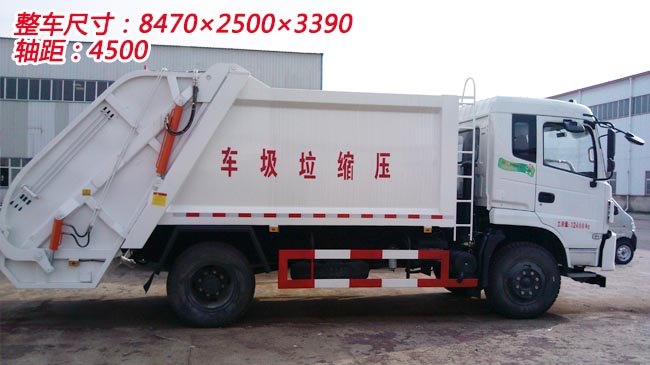 東風(fēng)特商壓縮式垃圾車,采用東風(fēng)D193-3駕駛室,配備東風(fēng)康明斯發(fā)動機(jī),8JS85變速箱,軸距4.5米。3.6噸前橋,10噸后橋,10.00R20鋼絲胎,帶ABS?杉友b行車記錄儀,電動玻璃,兩點懸浮,液壓反轉(zhuǎn)。