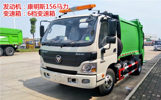 福田歐馬可壓縮式垃圾車,2.05米寬駕駛室、單排前翻、康明斯154馬力,6檔變速箱、軸距3.8米,6噸后橋、7.50R16鋼絲胎、動力轉(zhuǎn)向、空調(diào)、定速巡航、離合助力、斷氣剎、ABS。
