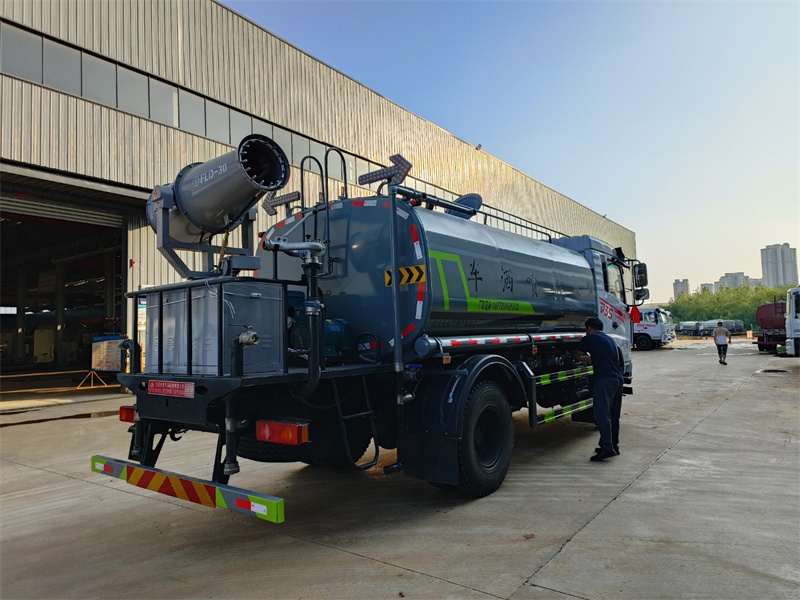 東風(fēng)12噸霧炮灑水車產(chǎn)品標(biāo)配前噴(鴨嘴)、后沖、后灑、側(cè)噴、后置式工作 平臺(tái),平臺(tái)上配置綠化水炮(可 360°旋轉(zhuǎn),既可以調(diào)成柱狀,也可 以調(diào)成霧狀,更可以調(diào)成直沖狀、大雨、中雨、小雨、毛毛雨),配 備優(yōu)質(zhì)大功率專用灑水泵(可自吸自排,可從河里或池塘抽水到罐體), 取力器,雜物過濾網(wǎng),消防接口,自流球閥系統(tǒng)、取力器、球閥、濾網(wǎng) 均為國(guó)家標(biāo)準(zhǔn)產(chǎn)品,主管道加粗,法蘭墊、法蘭盤加厚,大通徑球閥。 整體具備性能優(yōu)良安全可靠、效率高、流量大、維修方便等特點(diǎn)