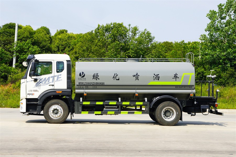 重汽15噸灑水車產(chǎn)品標配前噴(鴨嘴)、后沖、后灑、側噴、后置式工作 平臺,平臺上配置綠化水炮(可 360°旋轉,既可以調成柱狀,也可 以調成霧狀,更可以調成直沖狀、大雨、中雨、小雨、毛毛雨),配 備優(yōu)質大功率專用灑水泵(可自吸自排,可從河里或池塘抽水到罐體), 取力器,雜物過濾網(wǎng),消防接口,自流球閥系統(tǒng)、取力器、球閥、濾網(wǎng) 均為國家標準產(chǎn)品,主管道加粗,法蘭墊、法蘭盤加厚,大通徑球閥。 整體具備性能優(yōu)良安全可靠、效率高、流量大、維修方便等特點
