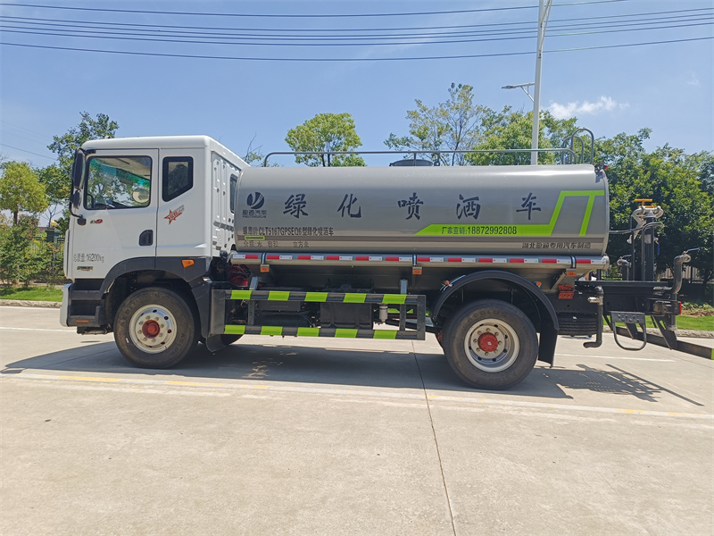 灑水車產(chǎn)品簡述:縱昂牌 CLT5167GPSEQ6 型綠化噴灑車標配前噴(鴨嘴)、后對沖、 后灑、側(cè)噴、后置式工作平臺,平臺上配置綠化水炮可 360°旋轉(zhuǎn),既可以調(diào) 成柱狀,也可以調(diào)成霧狀,配備優(yōu)質(zhì)大功率專用灑水泵,可自吸自排,可從河 里或池塘抽水到罐體,取力器,雜物過濾網(wǎng),消防接口,自流球閥系統(tǒng)、取力 器、球閥、濾網(wǎng)均為國家標準產(chǎn)品,主管道加粗,法蘭墊、法蘭盤加厚,大通徑 球閥。整體具備性能優(yōu)良安全可靠、效率高、流量大、維修方便等特點