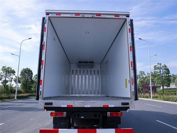 解放J6L 6米8冷藏車廂體配置為:斷橋隔溫工藝,整體結(jié)構(gòu)框架,內(nèi)外面料為3mm新款啞光玻璃鋼夾保溫層真空復(fù)合而成,廂體厚度為8cm,最新款鋁合金包邊型材,型材局部厚度為4mm(鋼制鉚釘加固),廂體內(nèi)部采用2個(gè)LED照明燈及廂體示寬燈,后門框不銹鋼材質(zhì),門框密封條為三元乙丙橡膠材質(zhì),加厚型不銹鋼合頁(yè)及鎖件;副梁為Q700車用大梁鋼,15mm厚大梁墊皮,加裝防撞膠塊,不銹鋼門鎖件,配后雙開門,副駕駛一側(cè)居中靠前開單側(cè)門一個(gè),帶2個(gè)排水孔。